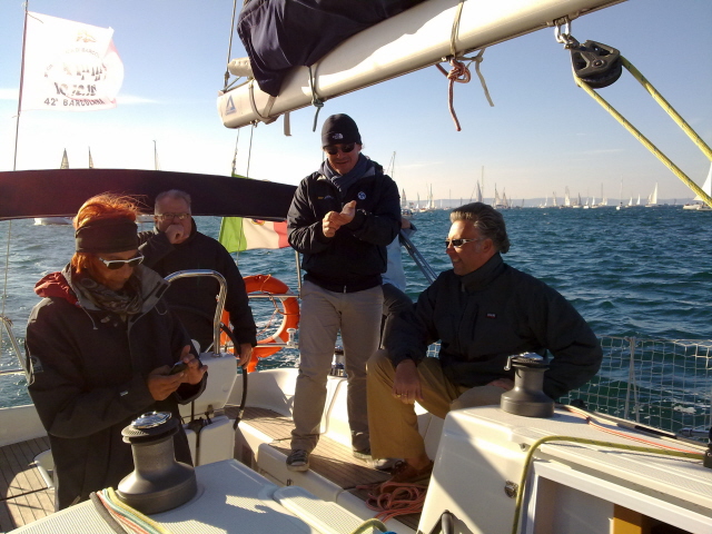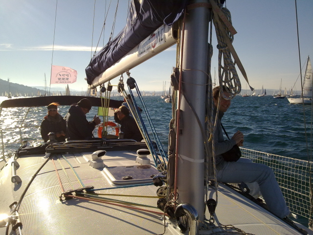 Tenete conto che la regata è comunque una competizione e non è possibile interagire con un PC: anche tenere in mano una macchina fotografica è un azzardo considerato che la Bora è a raffiche.